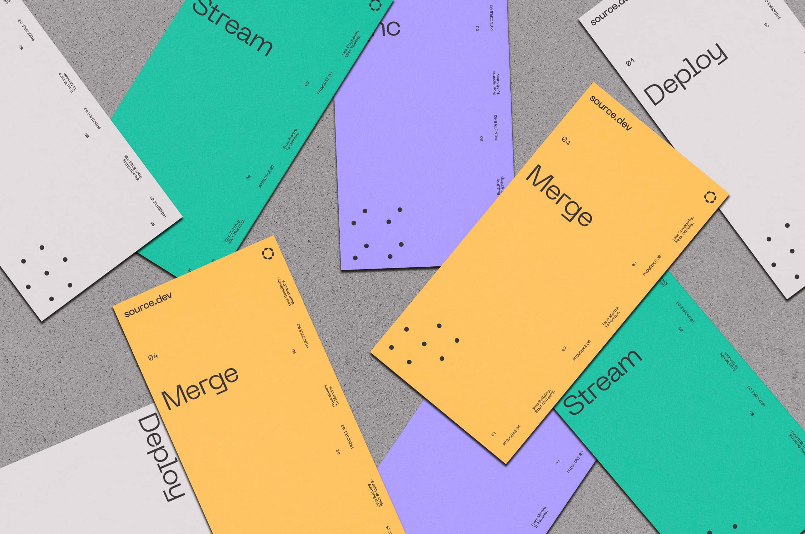 The color system builds on the original brand’s green, expanding it into a vibrant, energetic palette that stands apart in the DevOps landscape. This playful approach brings unexpected energy to a typically restrained market while maintaining connection to Source.dev’s established identity, ensuring continuity as the brand evolves alongside the platform it represents.