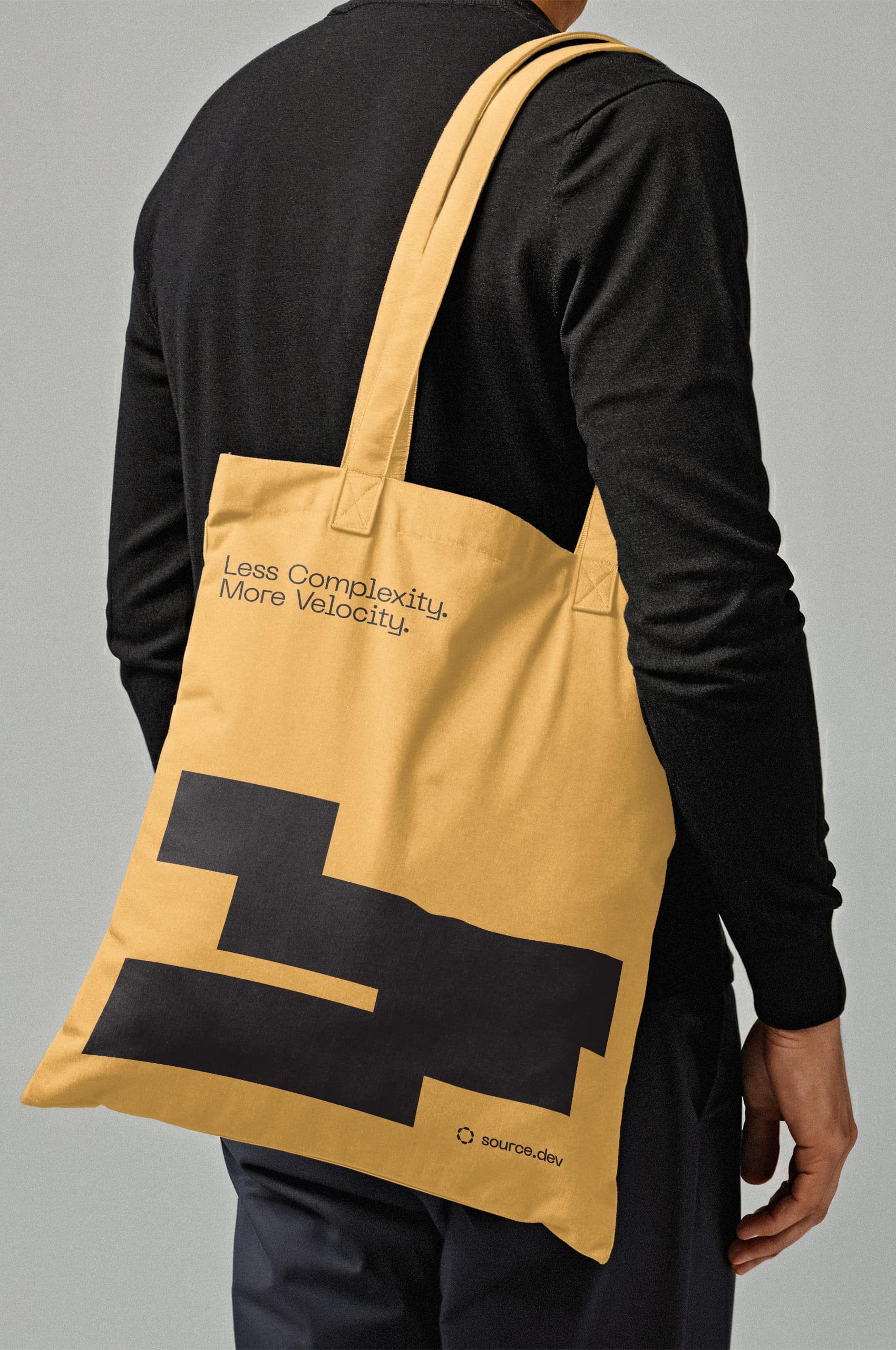 Smaller pattern elements draw directly from the punctuation within Source.dev’s codebase: periods, slashes, dashes. These fragments of actual syntax are arranged into intricate, technically sophisticated pattern screens that feel native to developers. The patterns speak the visual language of code itself, creating an immediate, authentic connection with the audience who lives in terminals daily.
