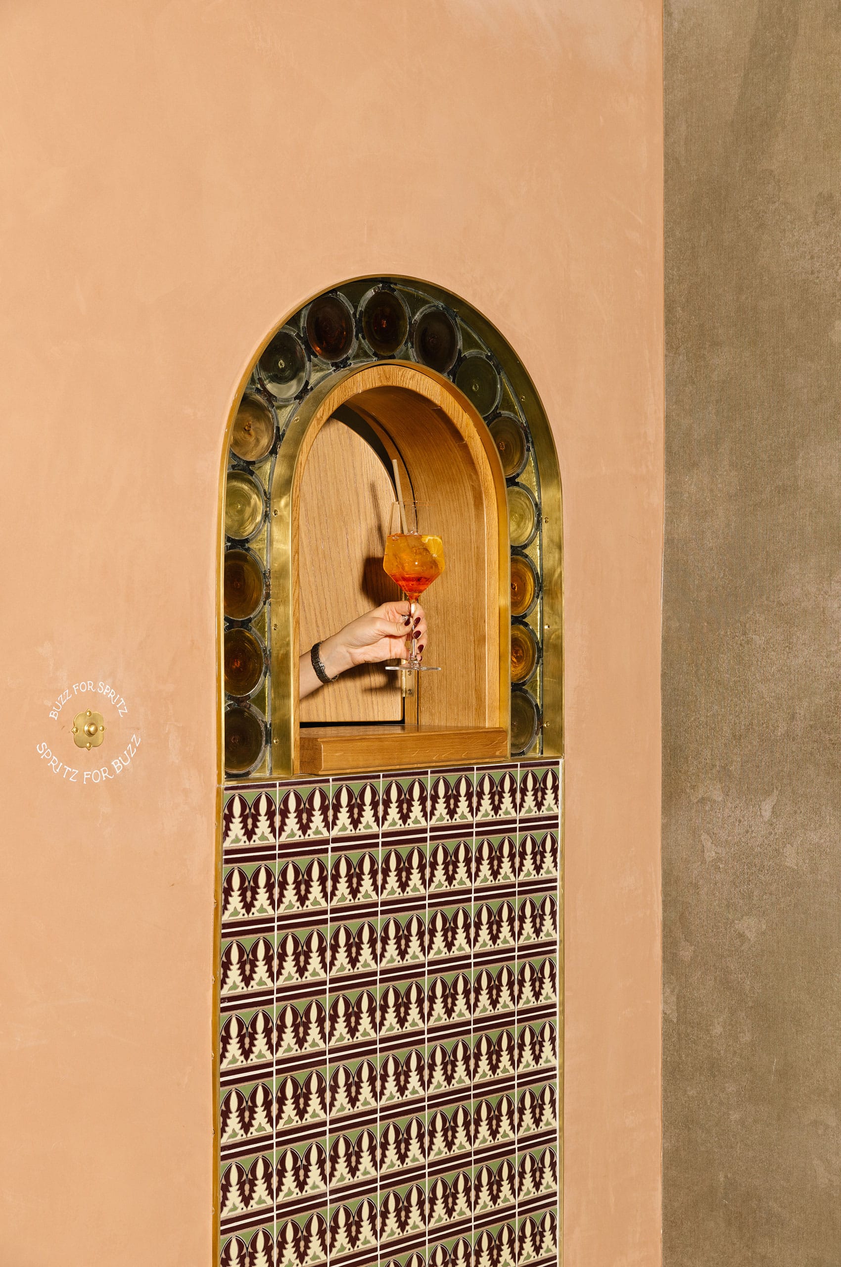 The Tavernetta Spritz window—a modern interpretation of the small street-facing openings where wine was sold directly from palazzos, particularly during plague times when distance was necessary.