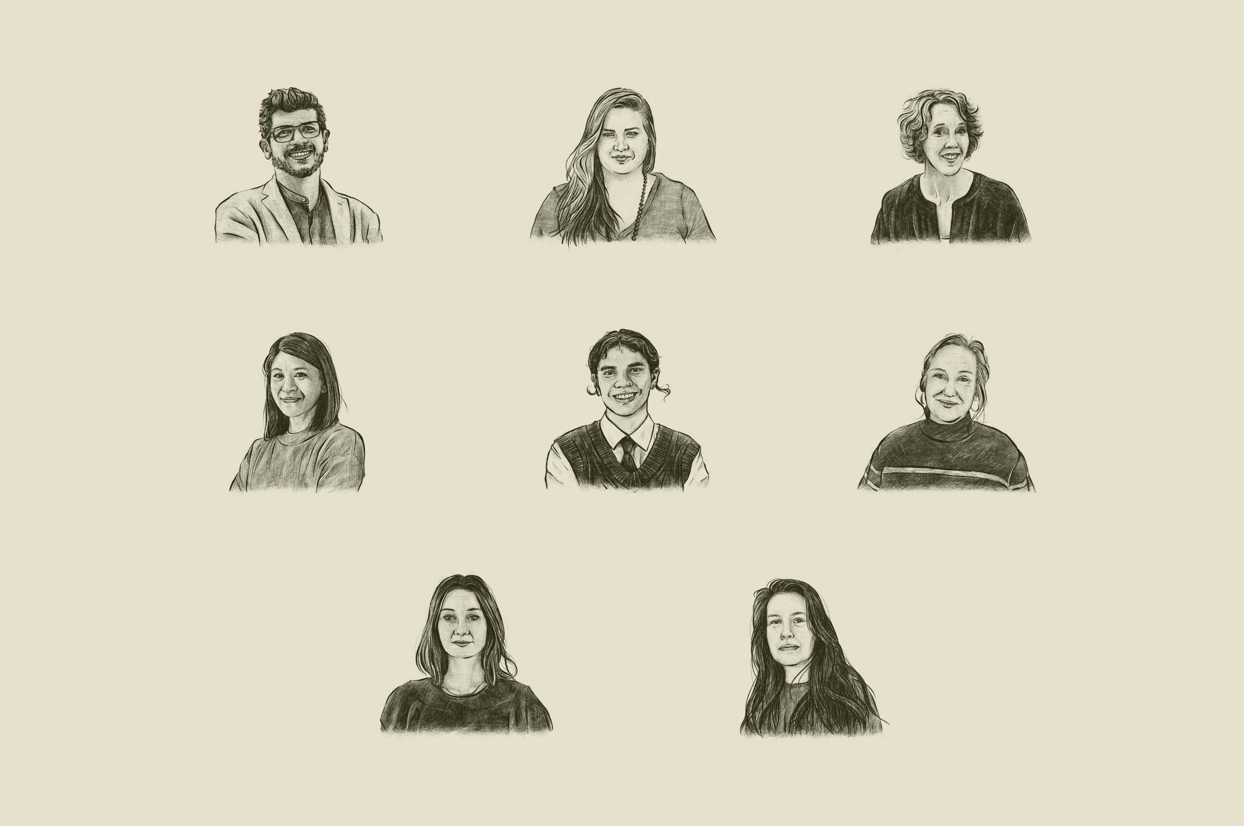 Rather than photography, we created hand-drawn portraits for everyone at BCG. The sketch quality is intentional, unifying people from different cities and regions under a single visual language