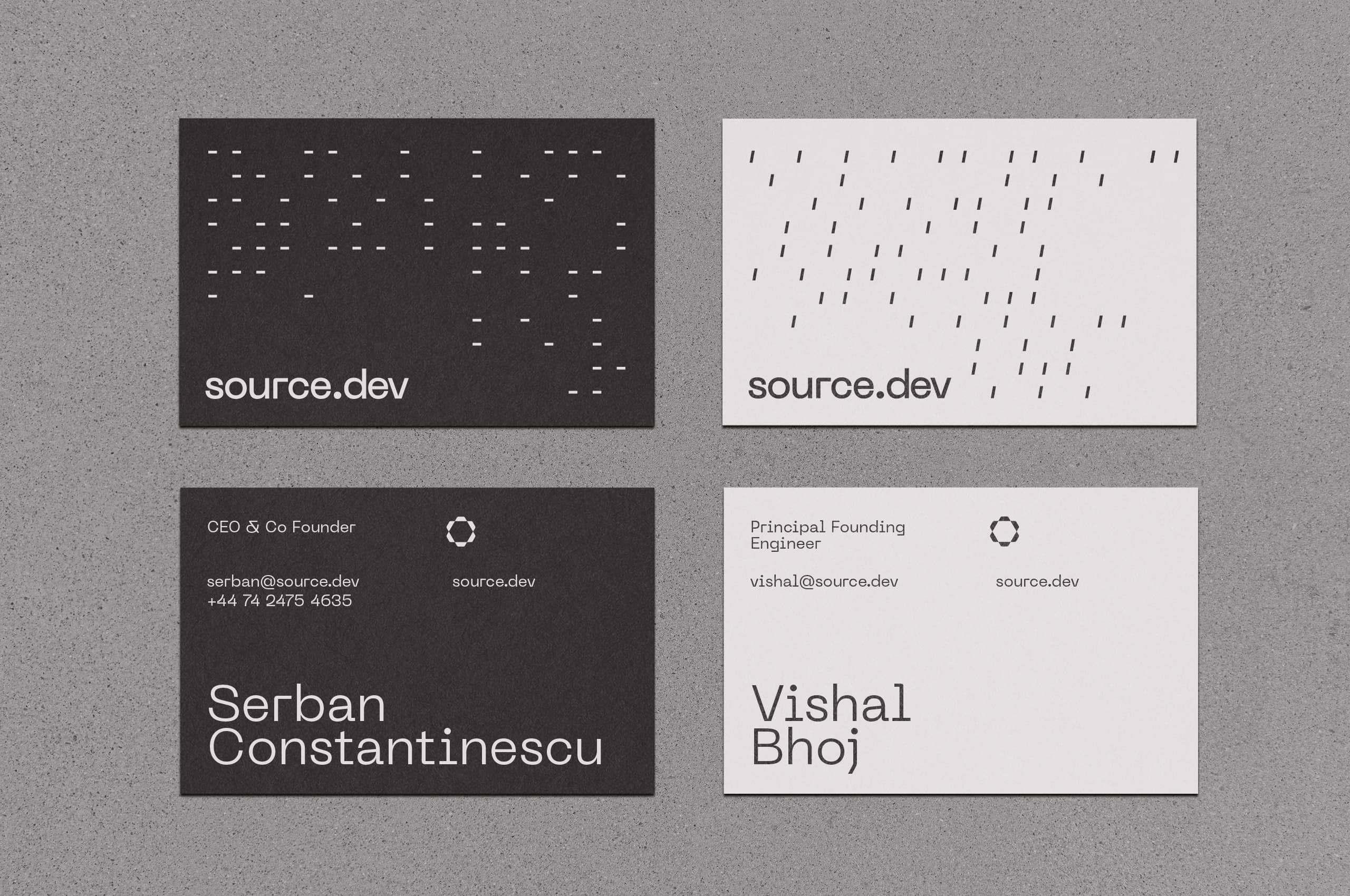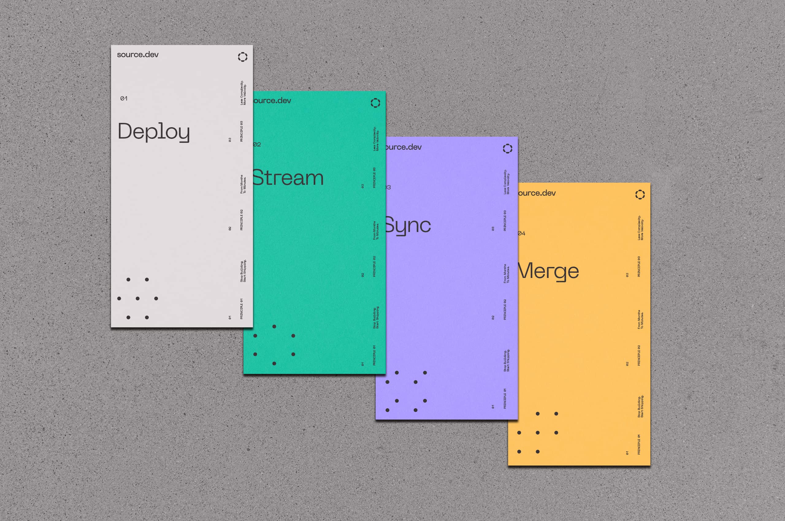 The initial brand served its purpose: establishing Source.dev’s presence and allowing the team to focus on building revolutionary tools. As the company matured and their platform solidified, they required an identity aligned with their technical depth and market ambitions. The evolution wasn’t about abandoning their roots but about matching their external expression to their internal expertise. The terminal-style typeface from the original identity carries forward in a more understated format, informing the type system throughout the brand and maintaining a thread of technical authenticity.