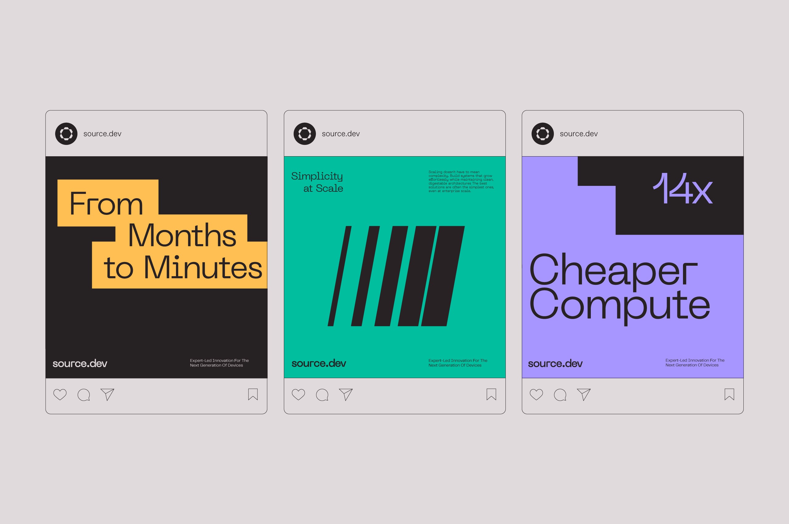 They partnered with Mast to develop an identity that reflects their unparalleled technical expertise and forward-thinking approach to device software. While their initial brand established market presence, they needed a visual system aligned with their team’s decades of Android experience and vision for transforming how manufacturers build, maintain, and update smart device software. The resulting identity positions Source.dev as essential infrastructure for next-generation development, combining technical precision with distinctive character that resonates with developer audiences while standing apart in the DevOps landscape.